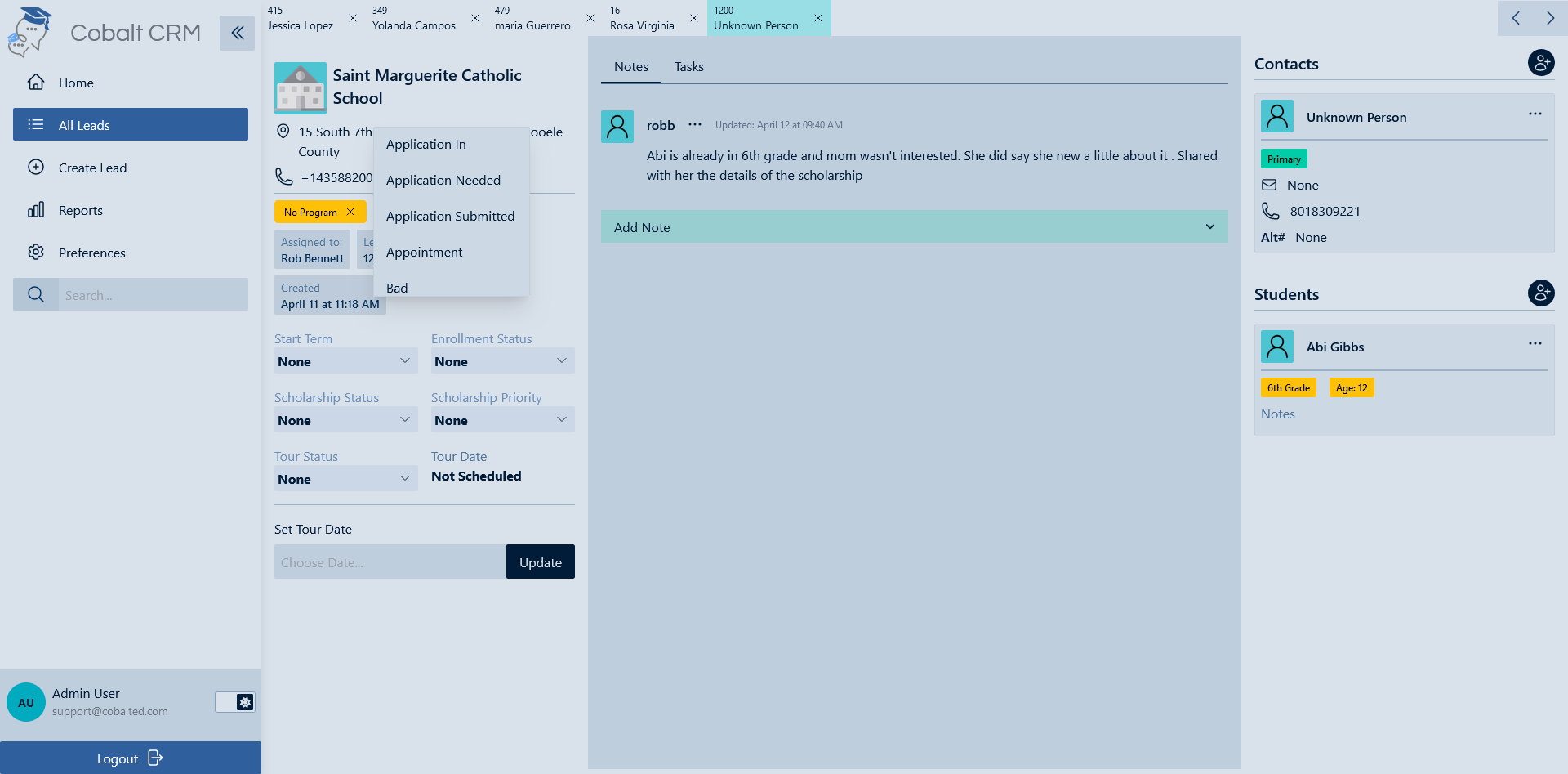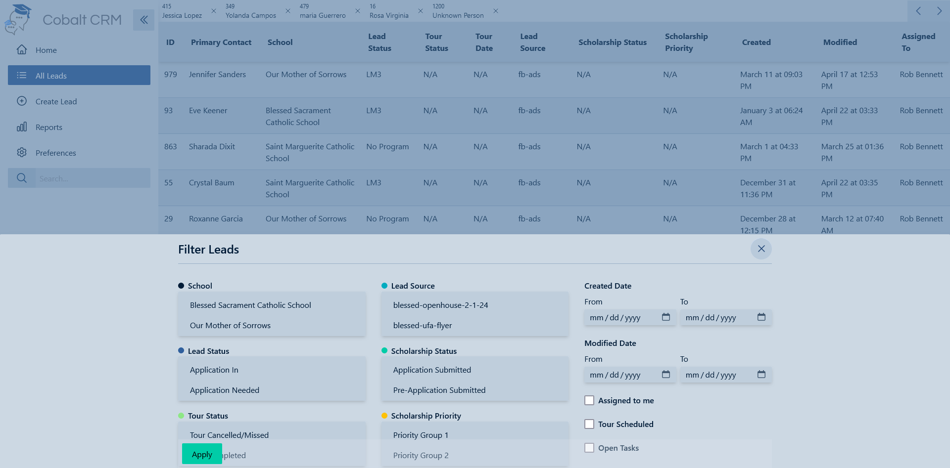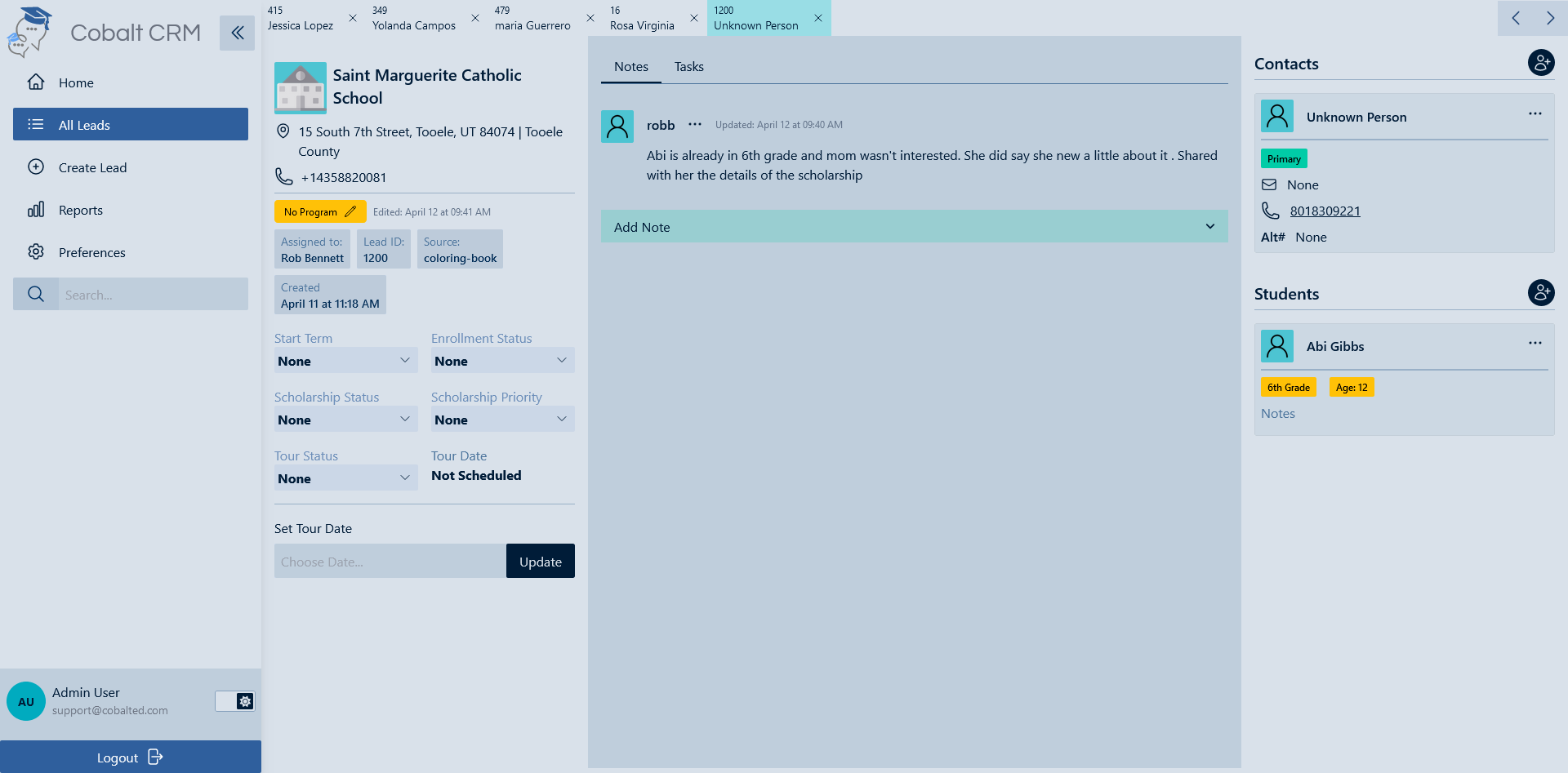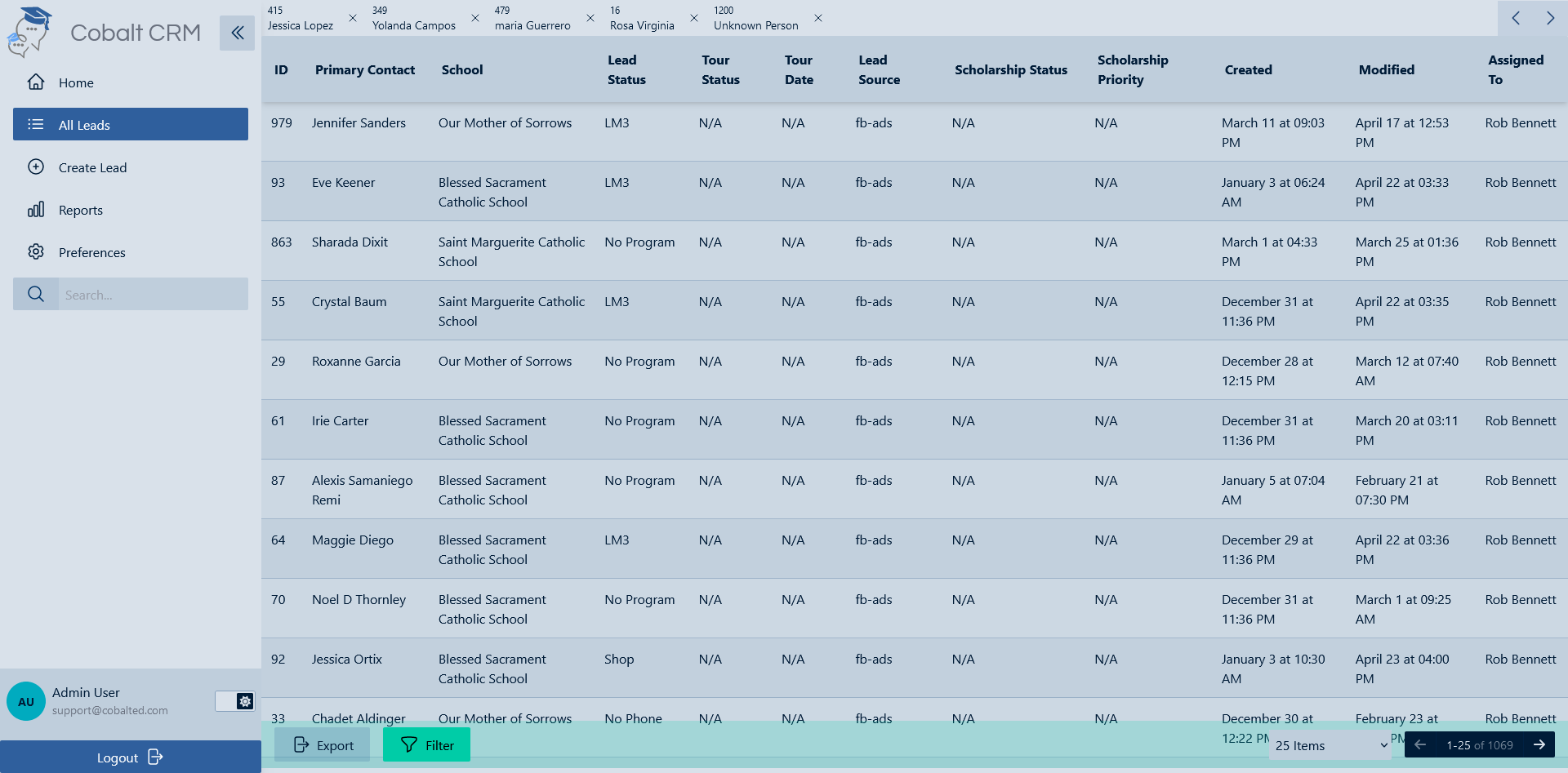 This project is a CRM used for an internal sales team at Cobalt Ed to help manage their leads. This has some integration with office 365, such as basic email and creating calendar events to synchronize with tasks, and Facebook ads.