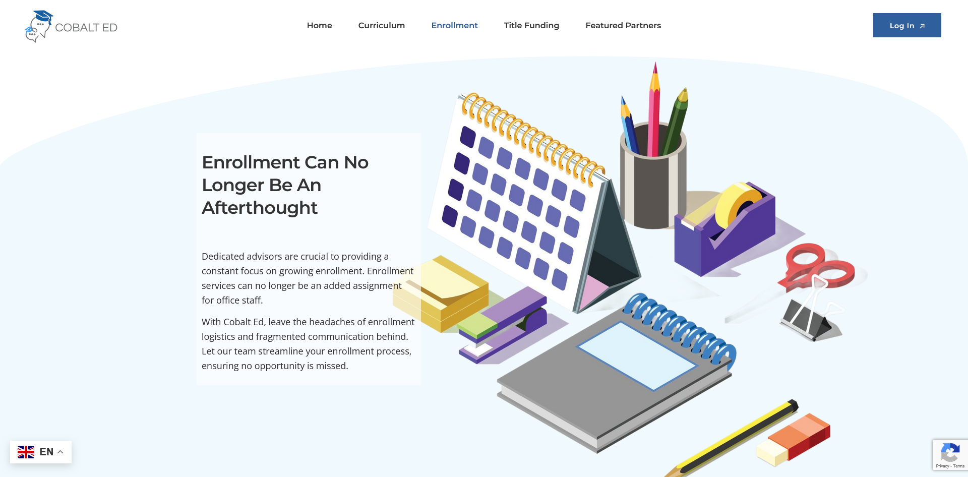My company Cobalt Ed was previously hosting their website with a marketing company, but needed to move to a self-hosting option to save costs. I worked to get the site moved over and have since continued to design and develop new content as the focus of the company shifts. I also actively maintain and keep the site updated.