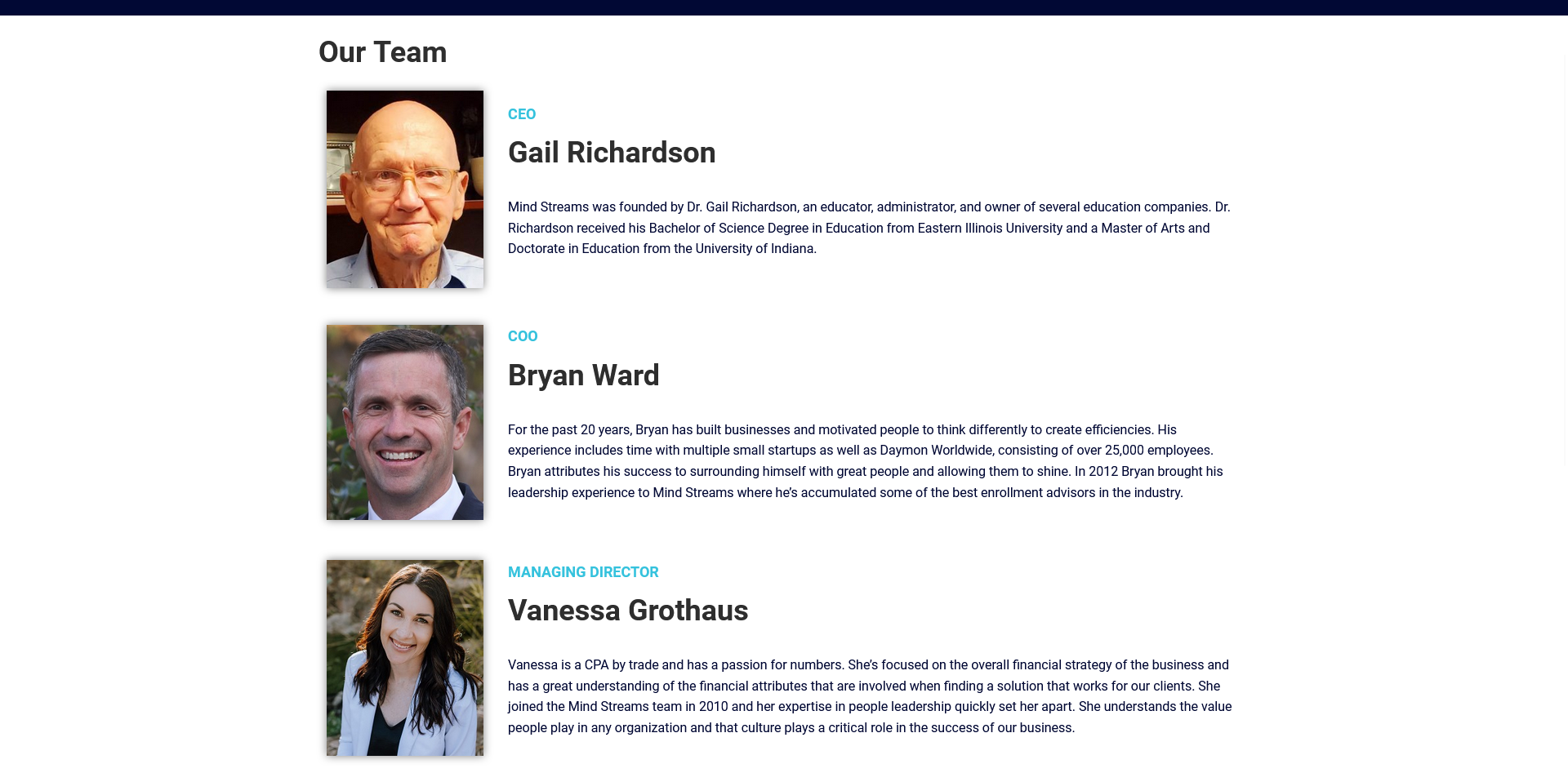This project was a website I worked on for Mind Streams. They needed someone to recover some content from their previously lost server and move it to a new WordPress site. Some data was unrecoverable unfortunately. I was responsible for setting the new theme and moving over some of the text content.
